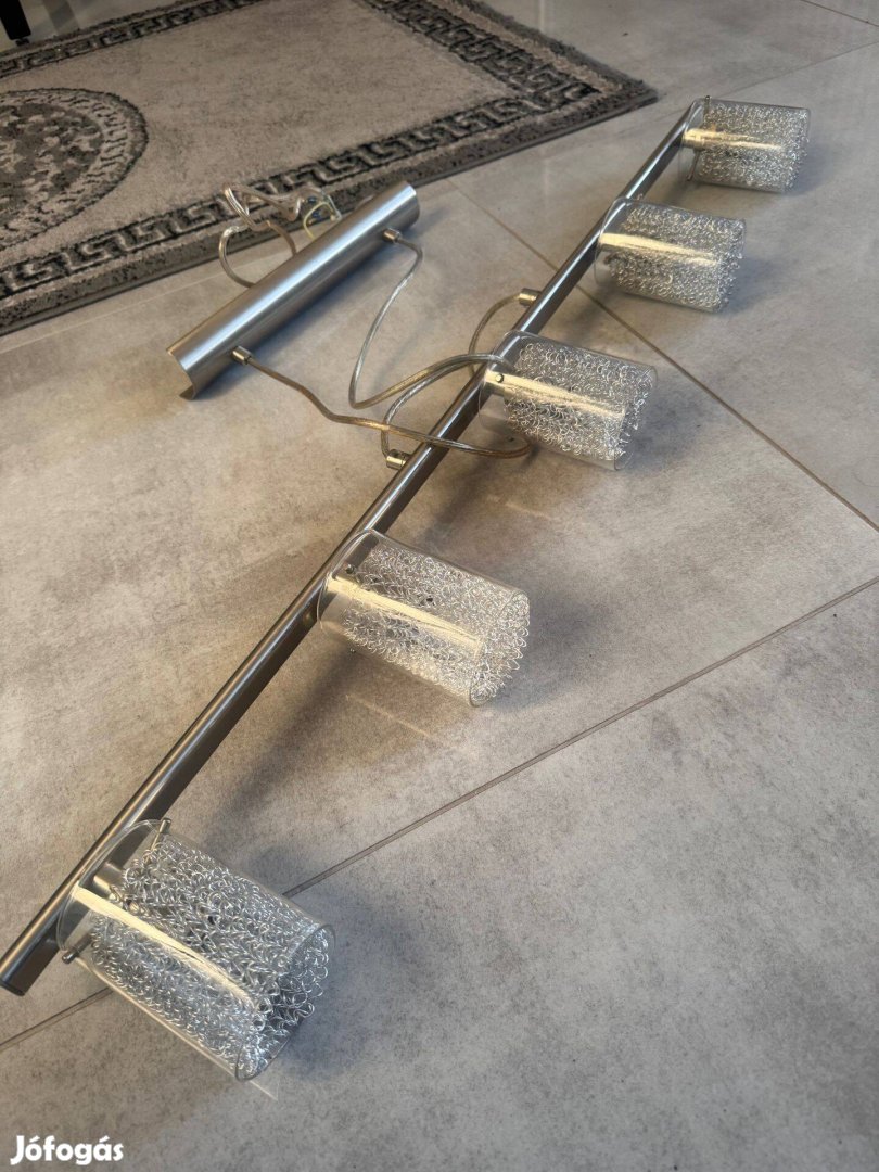 Modern ezüst rozsdamentes acél csillár 5 db üvegernyôvel, belül rozsdamentes acél tekercsekkel.