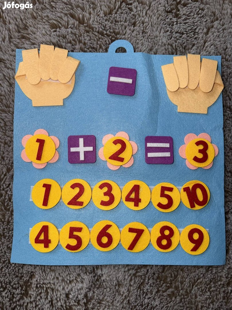 Hogyan működik? A filc ujjak lehajthatók, így a gyerekek vizuálisan is látják a mennyiségeket. A számok és műveleti jelek szabadon variálhatóak a