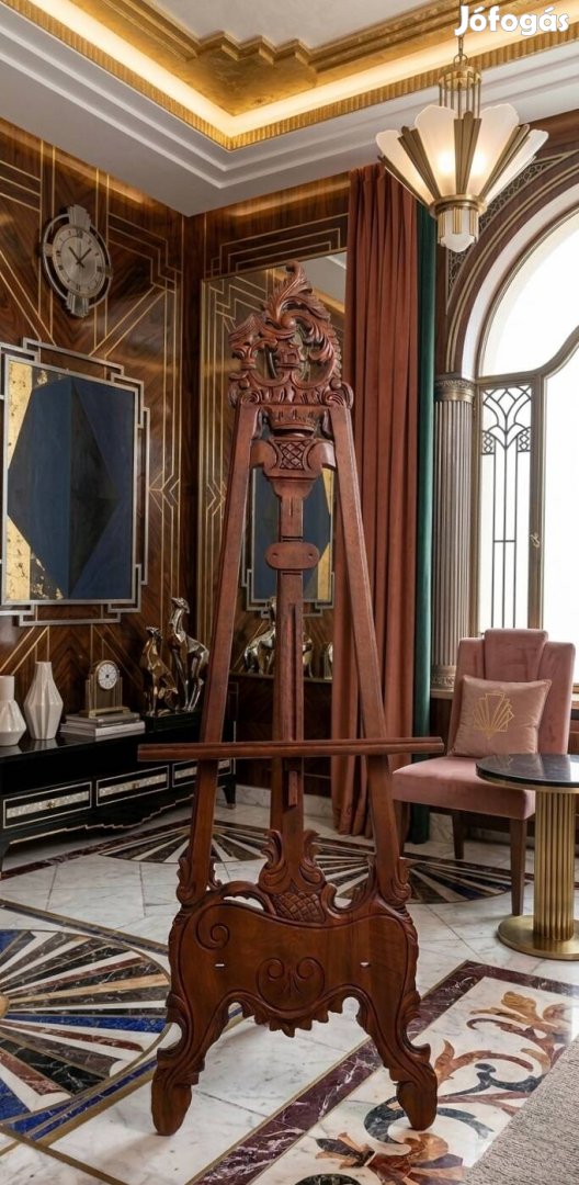 Ez az állvány, 175 cm magas és 56 cm széles, hibátlan állapotban várja új tulajdonosát, így ideális választás festők számára, akik szeretnék műveiket stílusosan bemutatni. Ugyanakkor kitűnő kiegészítő lehet otthoni dekorációként is, például képkeretek vagy műalkotások kiemelésére. A részletekben gazdag kivitelezés, a finom faragások és a harmonikus arányok révén minden tér eleganciát nyer vele.