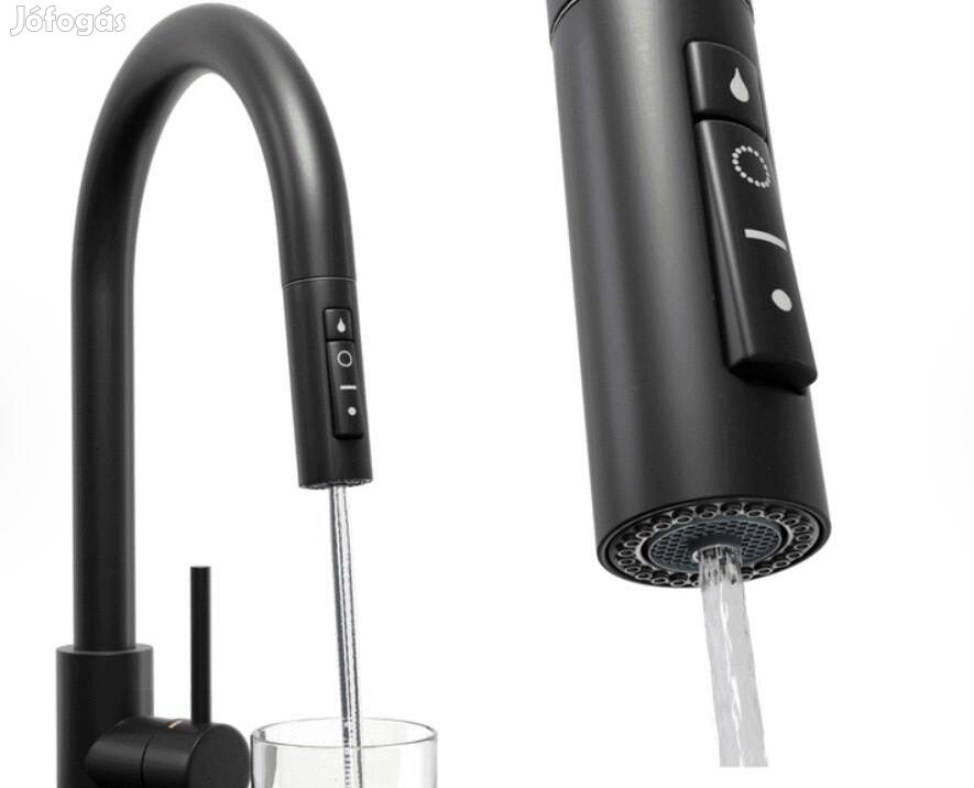Konyhai csaptelep, kihúzható zuhany, 2 üzemmód, 60cm, matt fekete