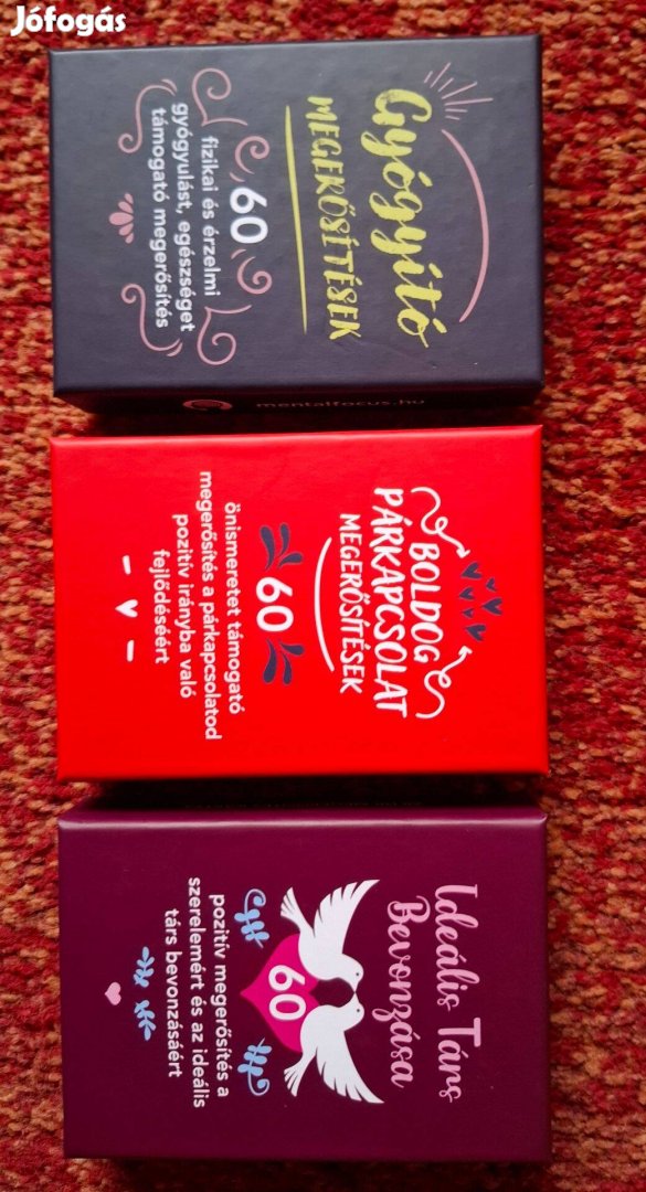 Helyhiány miatt eladóak a Mentalfocus megerősítés kártyacsomagjai. Vadonatújak és használatlanok, a dobozok csak a csomagolásból lettek kibontva.