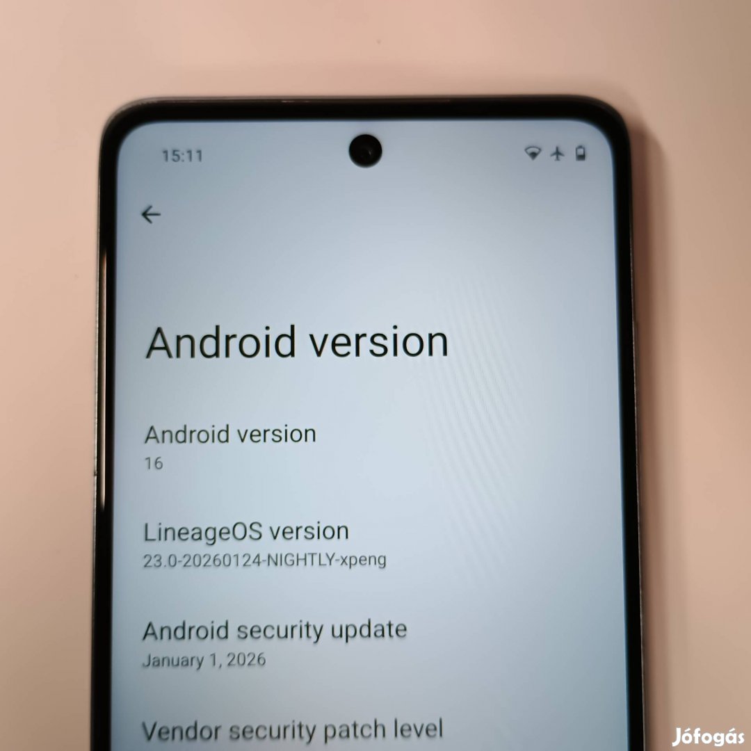 Operációs rendszer: Lineageos (android 16 alapon, 2026 január biztonsági frissitéssel)