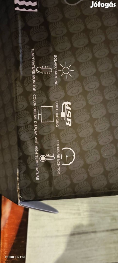 Nyomás és hőmérsékletet kijelzős. Napelemes töltés. Két doboz van.