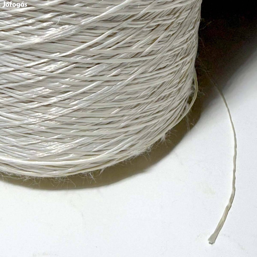 Eladó selyem jellegű műanyag kötözőfonal. Az orsó szélessége 16,2 cm, átmérője 9 cm, súlya 811 gramm, a fonal átmérője kb. 0,2 mm. Ára 1200 Ft.