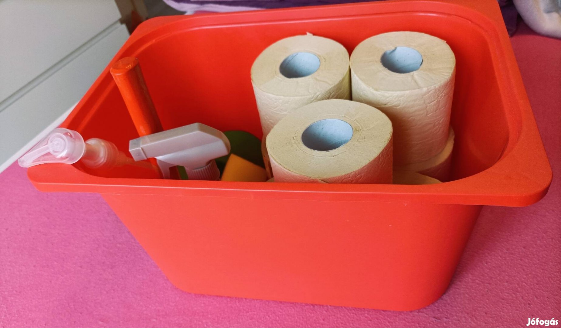 Műanyag tároló (Ikeás) narancssárga színű eladó.