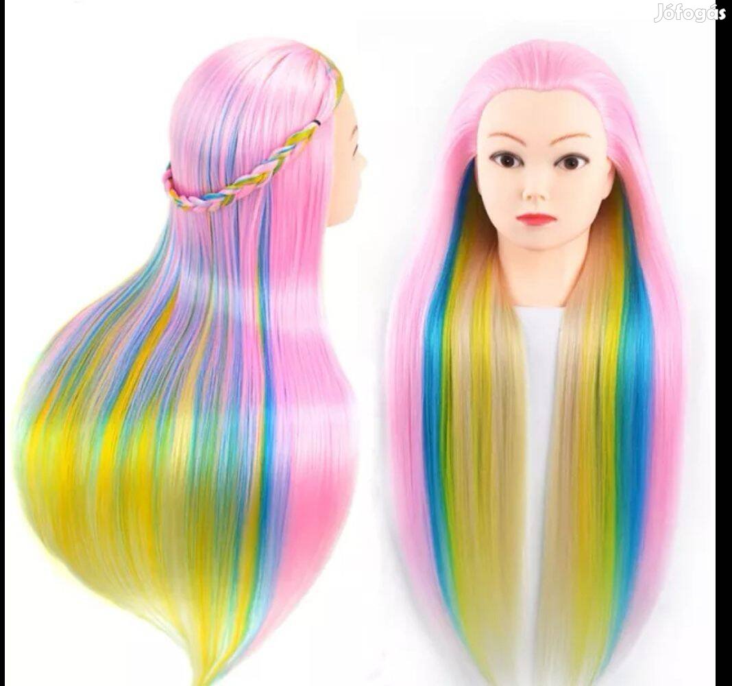 Új, színes hajú szintetikus babafej. Fonáshoz fésüléshez. Süthető vasalható 170 fokig 60-65 centi hajhossz. Csepelen átvehető. Asztali tartó, babafejtartó állvány és egyéb fodrászati termékek a oldalon.