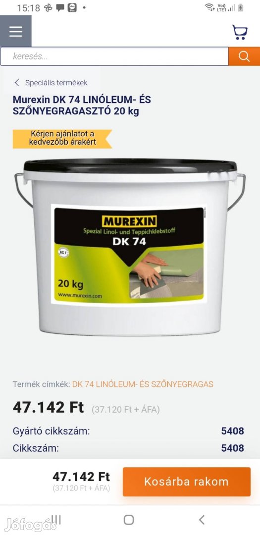 Eladó Murexin pvc, szőnyeg ragasztó bontatlan 20kg os vödör, a bolti ár feléért.