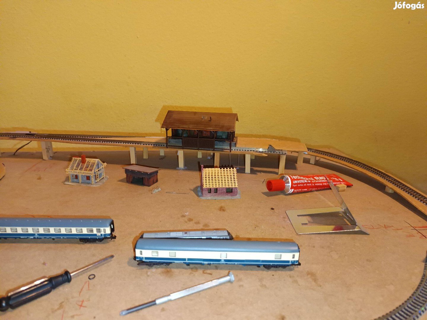 N-méretarányú vasútmodell terepasztal, elektromosan bekötve. Méretek: 120cmx65cm. Épületekkel, alapanyaggal, építési eszközökkel a vásárló válogathatja ki!!!! A befejezésről pedig unokájával, gyermekével gondoskodhatnak!!! Csepelen átvehető, kipróbálható!