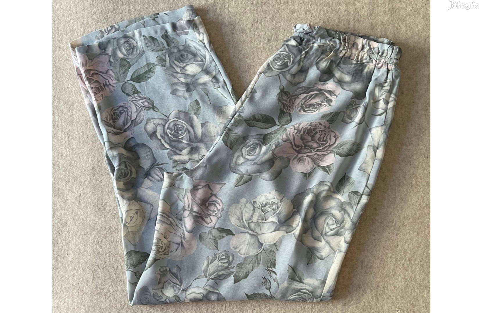 Mért méret: derékb: 74 cm (gumis); csípőb. 110 cm; teljes hossz 103 cm; szár bőség 31 cm;