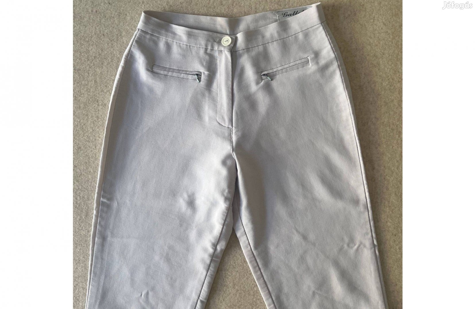 Újszerű kiváló állapotban lévő, elegáns női térdnadrág eladó. Karcsúsított szabású, térd alá érő, elöl cipzárral, gombbal záródó, nagyon csinos, kényelmes, sztreccses nadrág. 2 db cipzárral záródó kis zseb van az elején, szára egyenes szabású, alja felhajtható gombolós, felsliccelt.