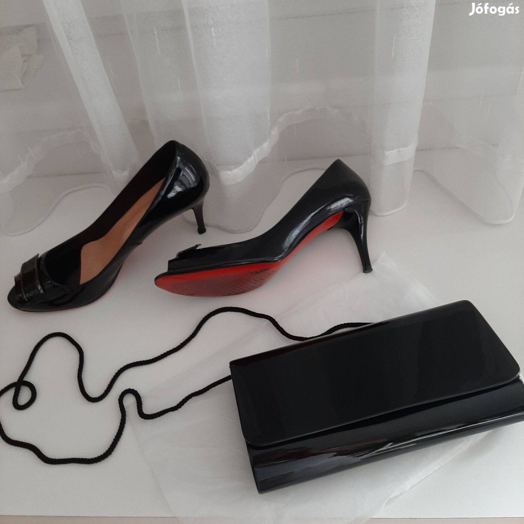 Nagyon elegáns, Fabrizio Filippi fekete olasz lakkcipő + táska