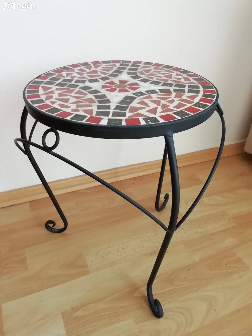 Nagyon szép kis asztalka, mozaikköves virágtartó kovácsoltvas