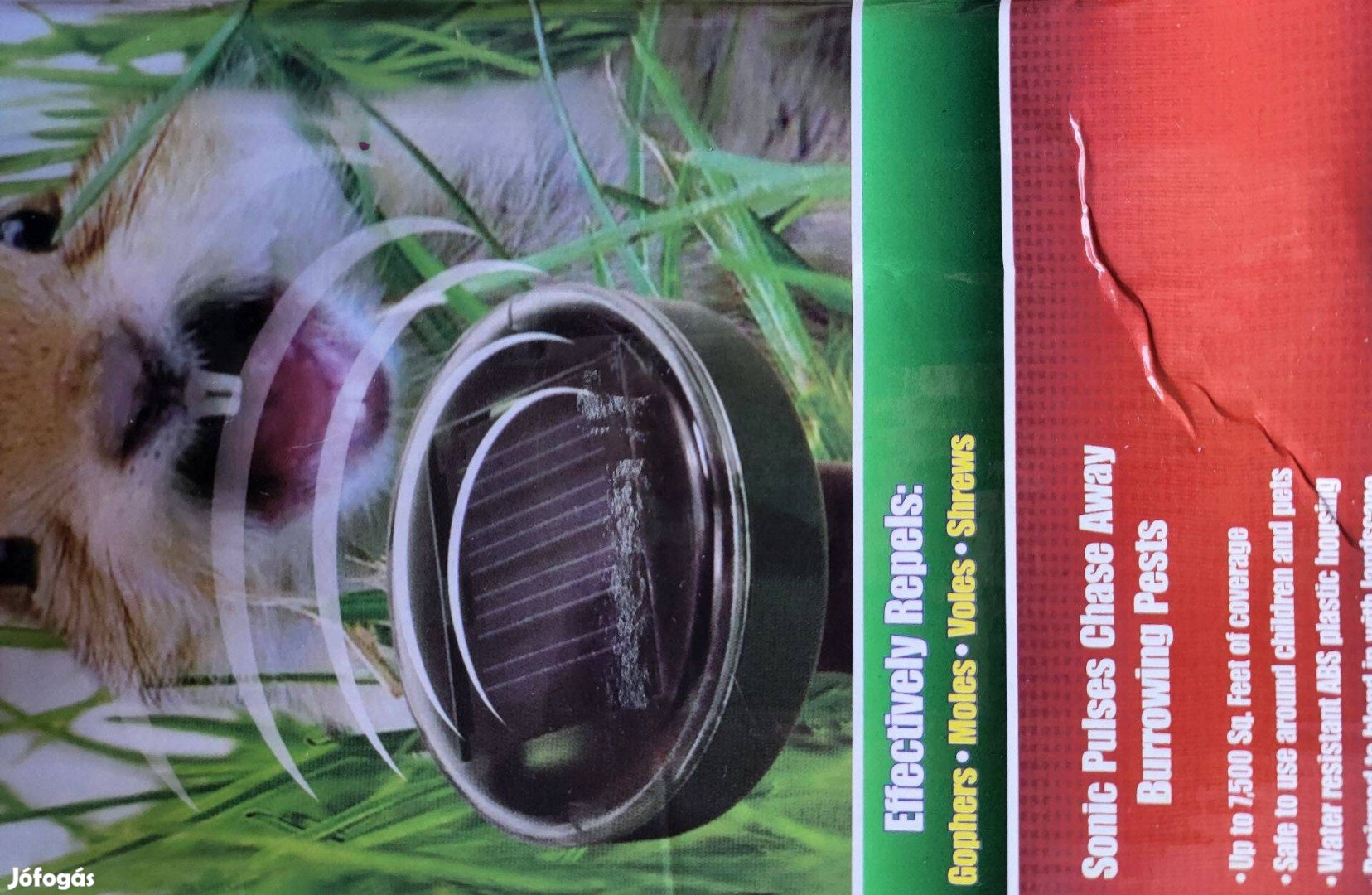 A karó szára (ami föld alá megy) adja a hangot, olyan tartományban, amit a vakondok nem szeretnek. Mivel napelemes, éjszaka csöndben van. 4 db riasztó van a dobozban.
