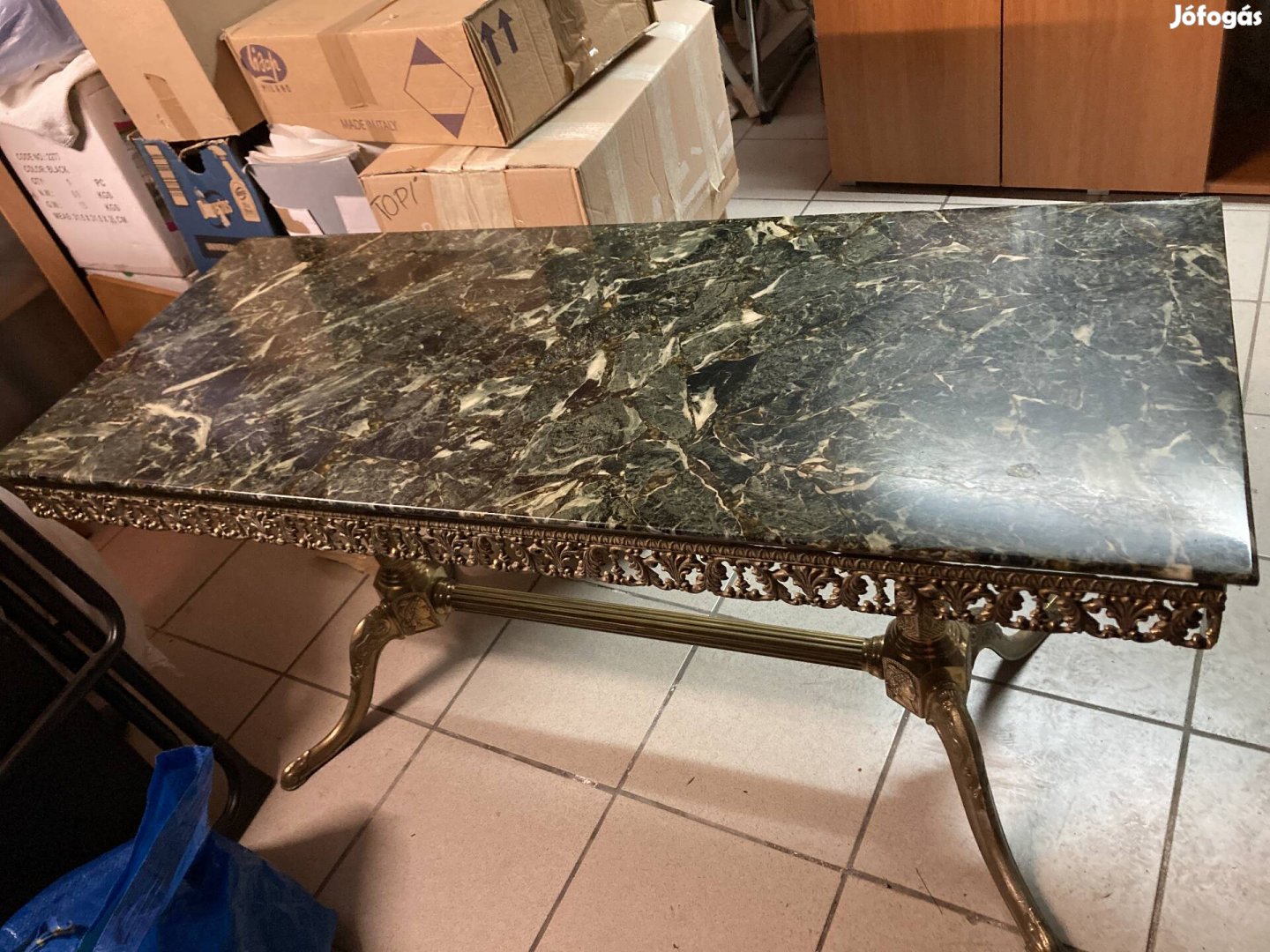 Képen látható asztal elado, különleges darab, masszív, zold és óarany