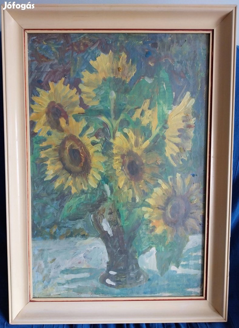 Ismeretlen festőtől, napraforgókat ábrázoló csendélet.