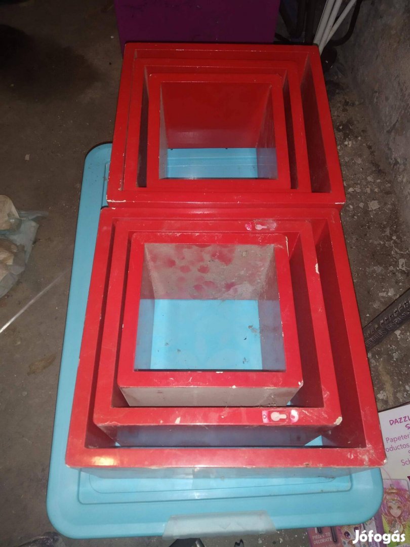 fali polcok piros, szögre akasztós kisebb nagyobb négyzet alakúak 30cm