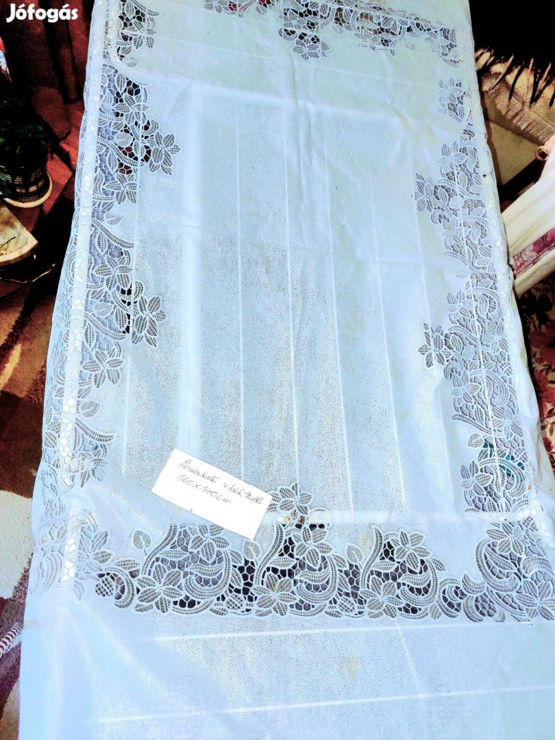Lemoshato csipkes mintazatu vilagos kék abrosz majdnem ujszerú pici elszínezodes foltja a foton szinte nem is latszik