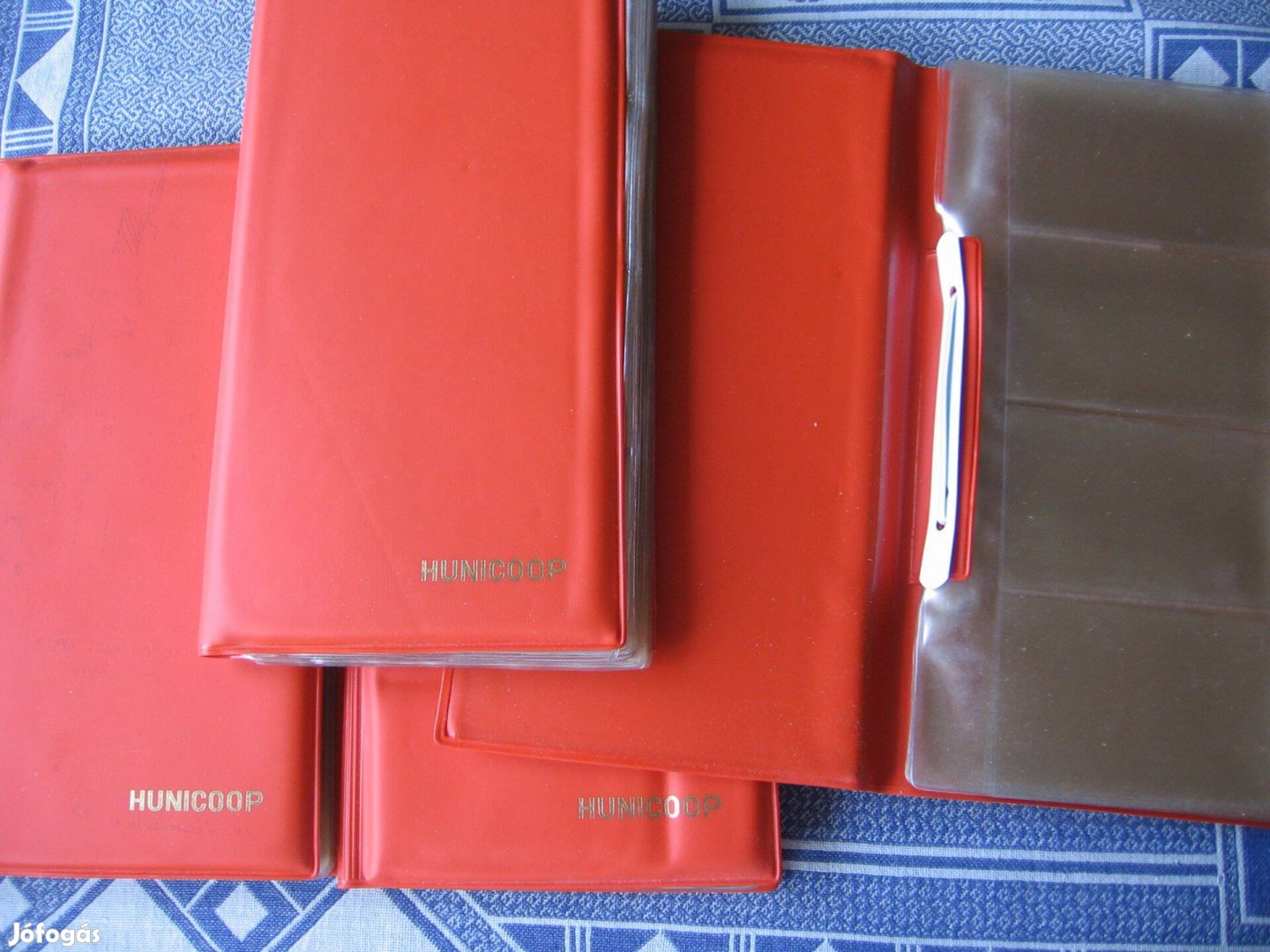 Négy darab, piros külsővel, 13,5 x 25,5 cm méretben, a képeken látható állapotban.Egyenként 80 db 10 x 5,5 cm-es és 60 db 10 x 8 cm-es névjegy részére.