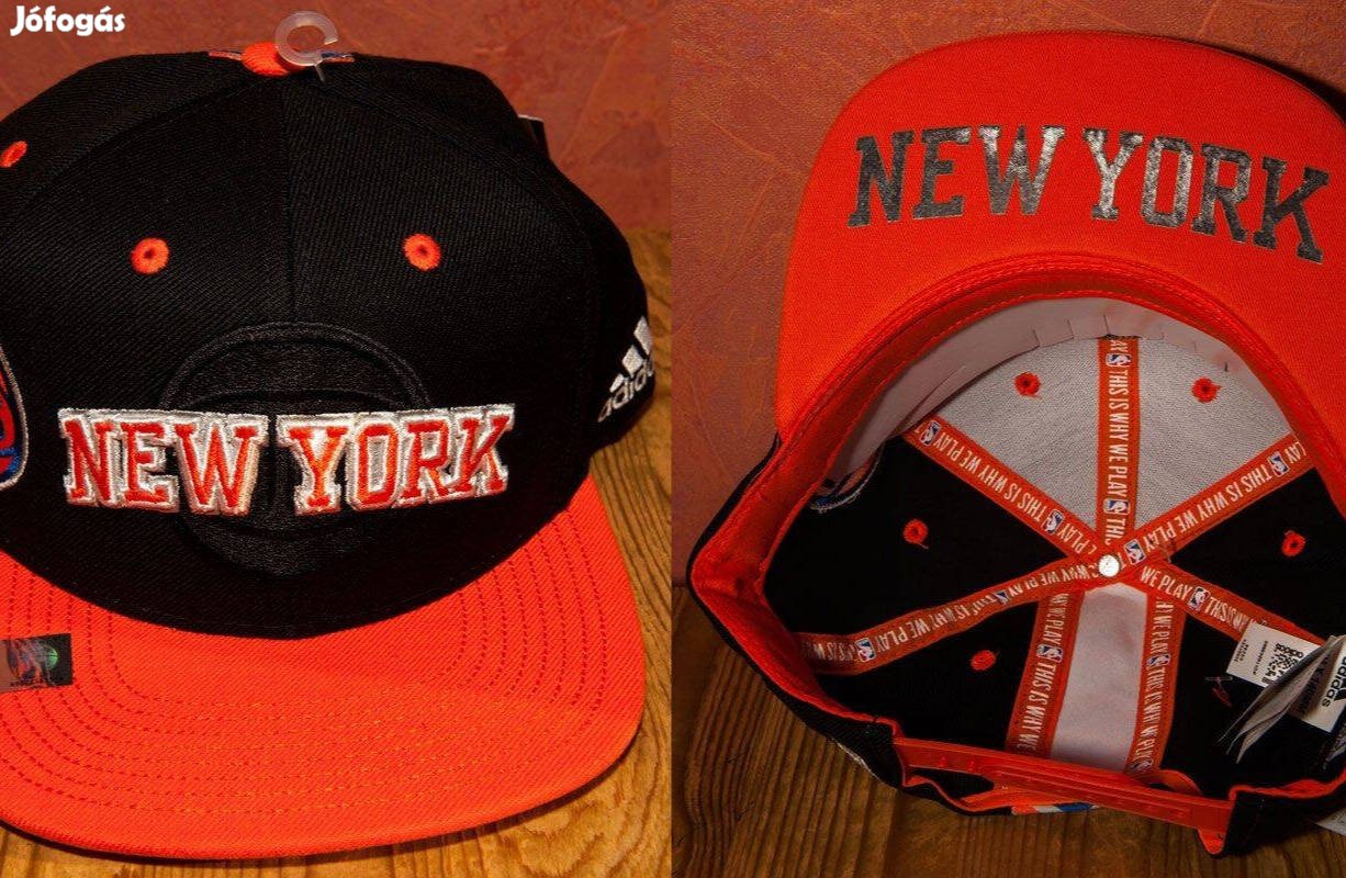 Elől hímzett New York felirat, oldalán hímzett kosárlabda Knicks felirattal másik oldalon adidas logó.