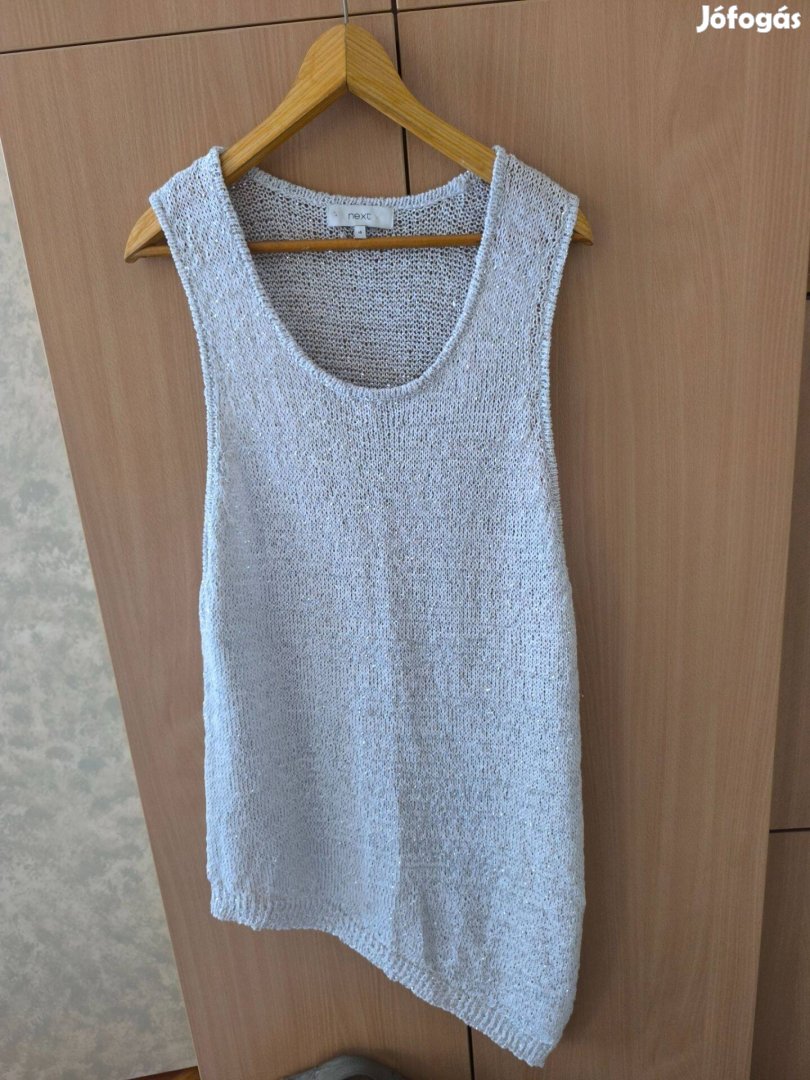 Next világosszürke ezüst csillogós kötött tunika, mellény 42-48-as méretű, laza kötésű, rugalmas az anyaga, új állapotú 2500 Ft-ért eladó. Anyaga: 81% pamut, 11% metallised fibre, 8% nylon