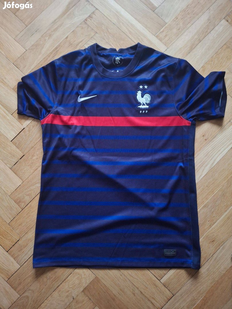 Eladó egy kifogástalan állapotú, eredeti Nike Franciaország futballmez. Klasszikus sötétkék színben, hímzett logóval és Nike pipával.