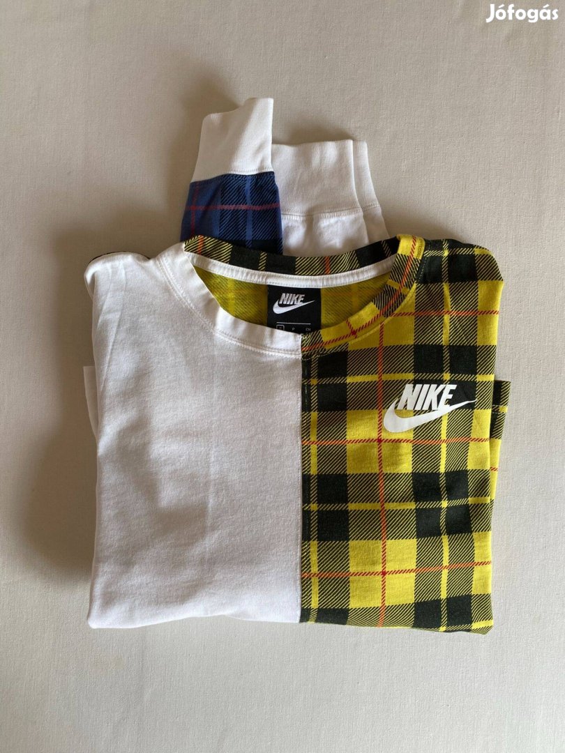 Eladó Nike női hosszú ujjú, oversized, rövid, cropolt, széles fazonú póló, fehér-sárga kockás, kiváló állapotú, S-es méretben.
