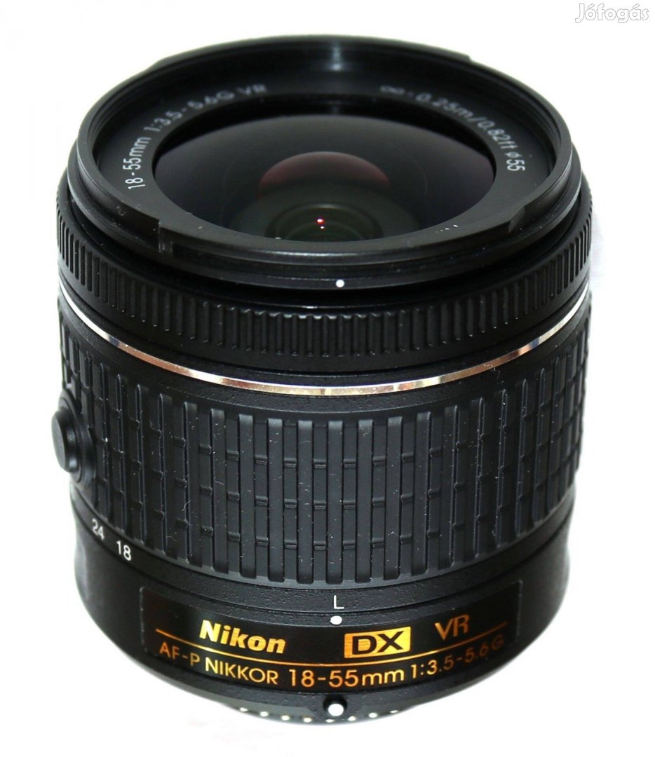 Nikon AF-P Nikkor 18-55 mm 1:3.5-5.6 VR G újszerű, hibátlan, fókuszmotoros, hangtalan stabilizátoros objektív.