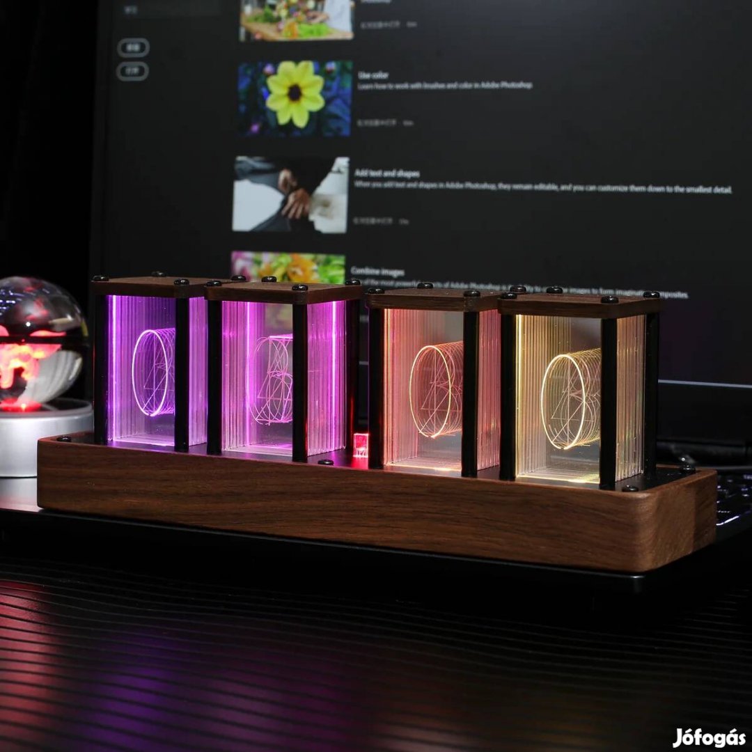 Nixie stílusú LED Infinity óra - RGB design asztali dekor