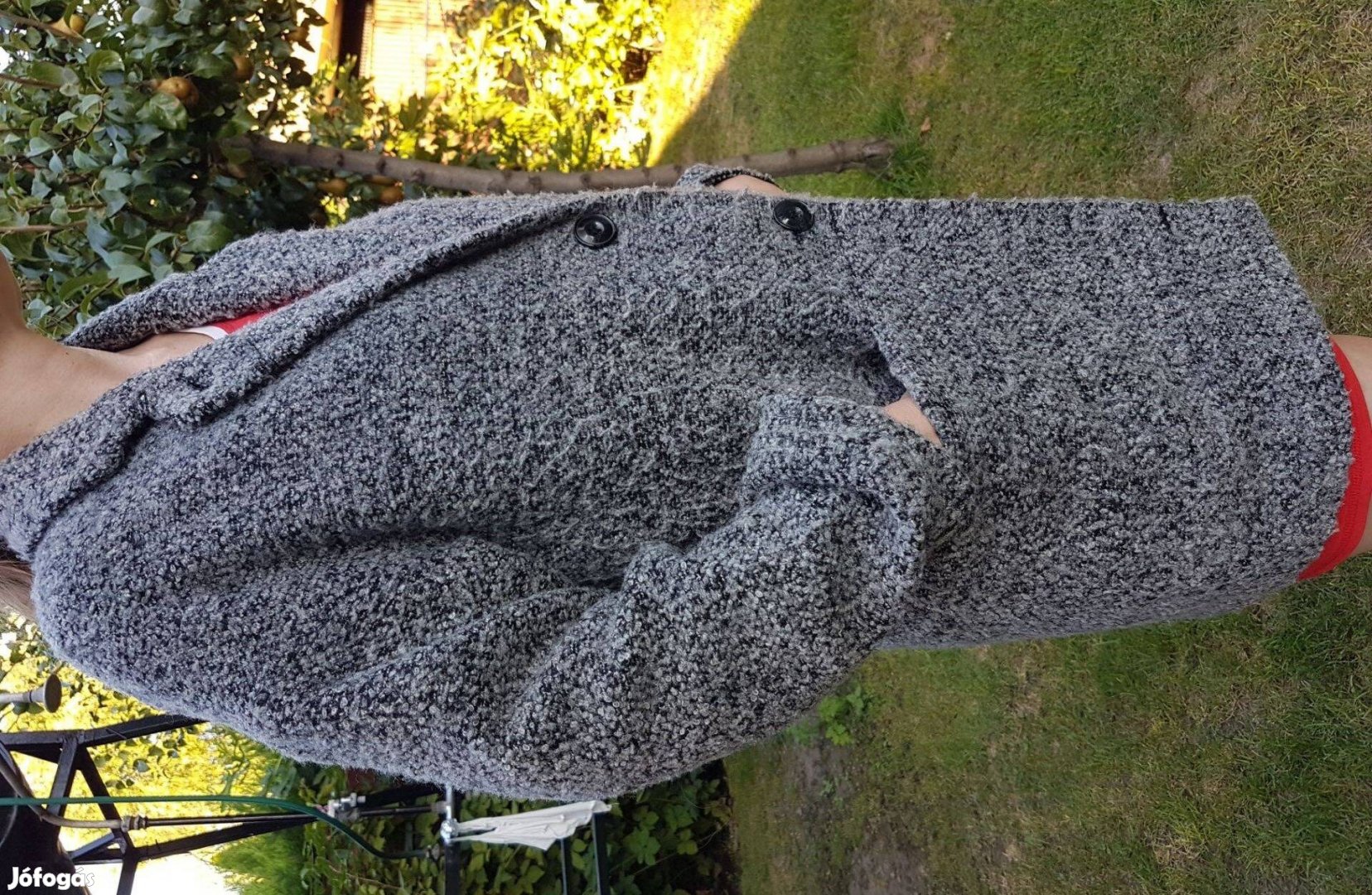 36-os méretű szürke színű női Vögele buklé kabát két zsebbel 2000 Ft-ért eladó.