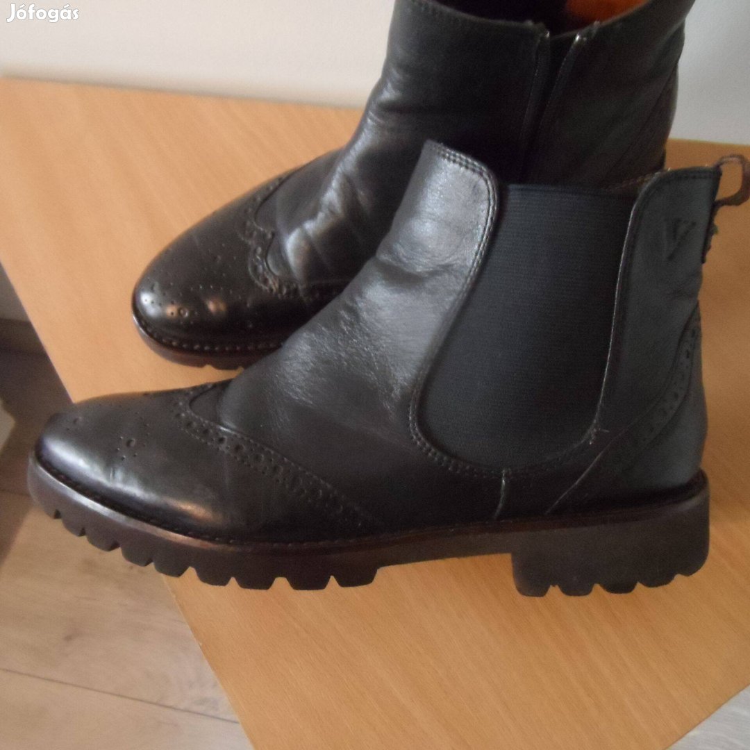 Női 38-as valódi bőr elegáns fekete bokacipő