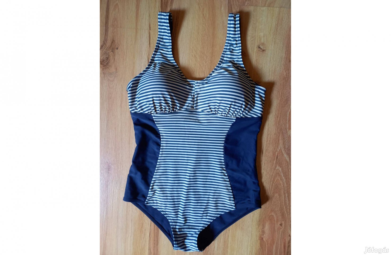 Eladó használt állapotú Roberta márkájú L méretű női egyrészes fürdőruha sötétkék szinben, elől kék fehér csikós betéttel.