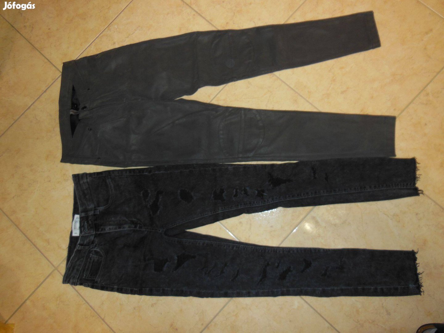Női/Tini 34-es hosszú nadrág, Mango szaggatott és bőrhatású nadri