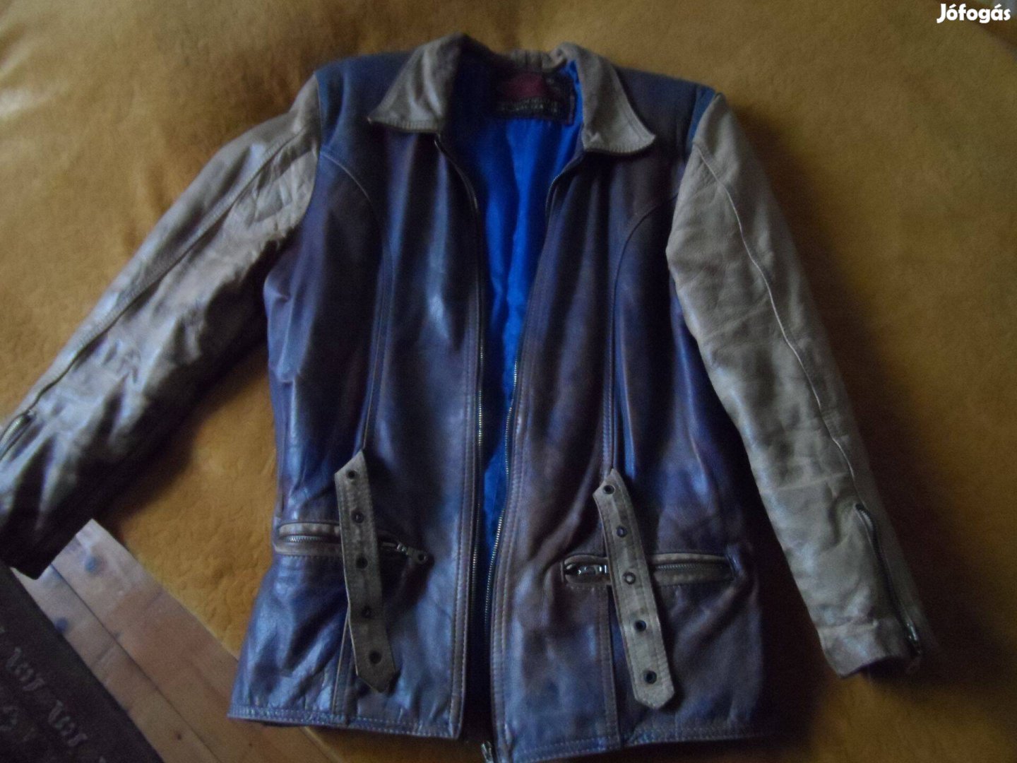 Drapp-kék színű női kb. S-es méretű marhabőr bőrkabát eladó. A cipzárja nem mindig működik, lehet, hogy egy cserét megérne, mert a kabát jó minőségű vastag bőr, akár motoros kabátnak is hordható lenne.