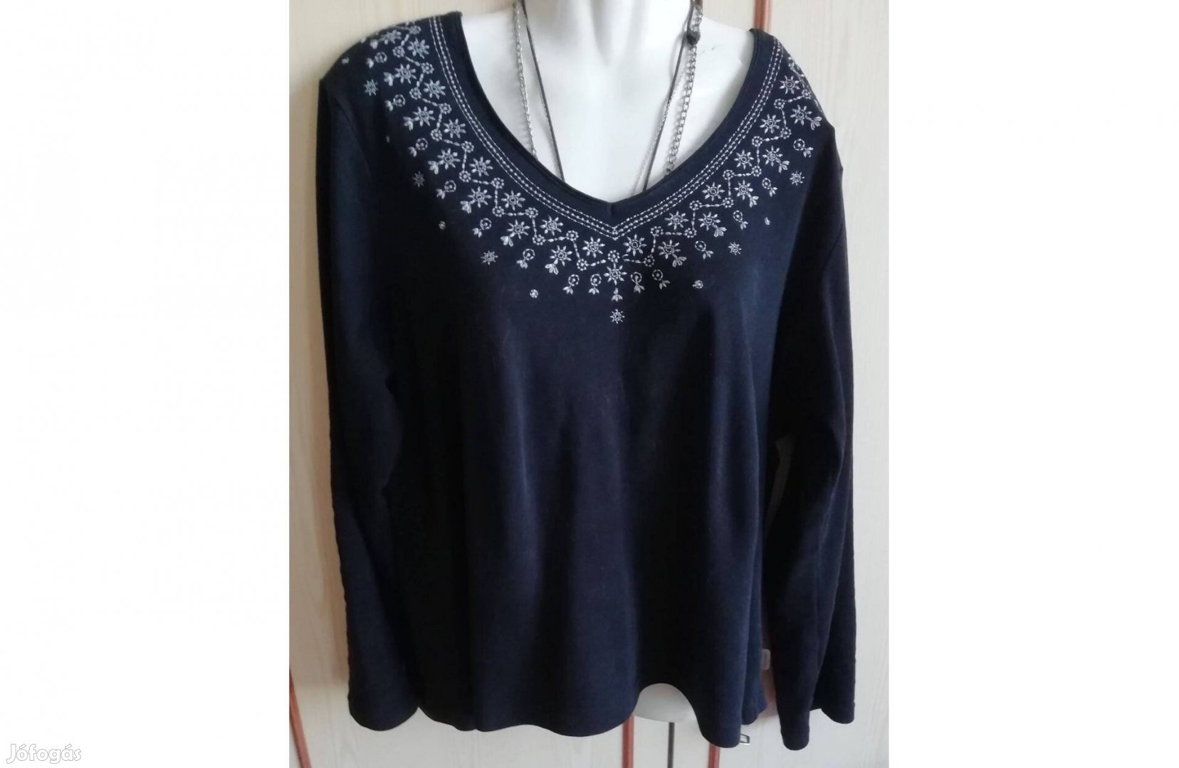 Női felső, fekete hímzett dekoltázsrésszel