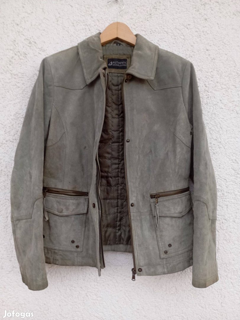 Authentic női világos zöls khaki hasított bőr dzseki.