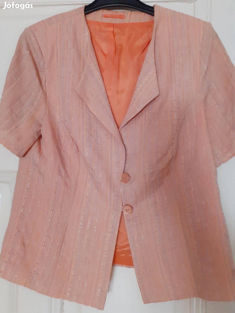 Eladó rövid ujjú kosztüm, bélelt, 42. Nőiesen szabott felső, fémes átszövéssel. Hossz: 64 cm, mb: 92 cm. A szoknya színében hozzáillő anyagból, hossza: 55cm, db: 84 cm. Ára: 3.500 Ft. Bp. Zugló.