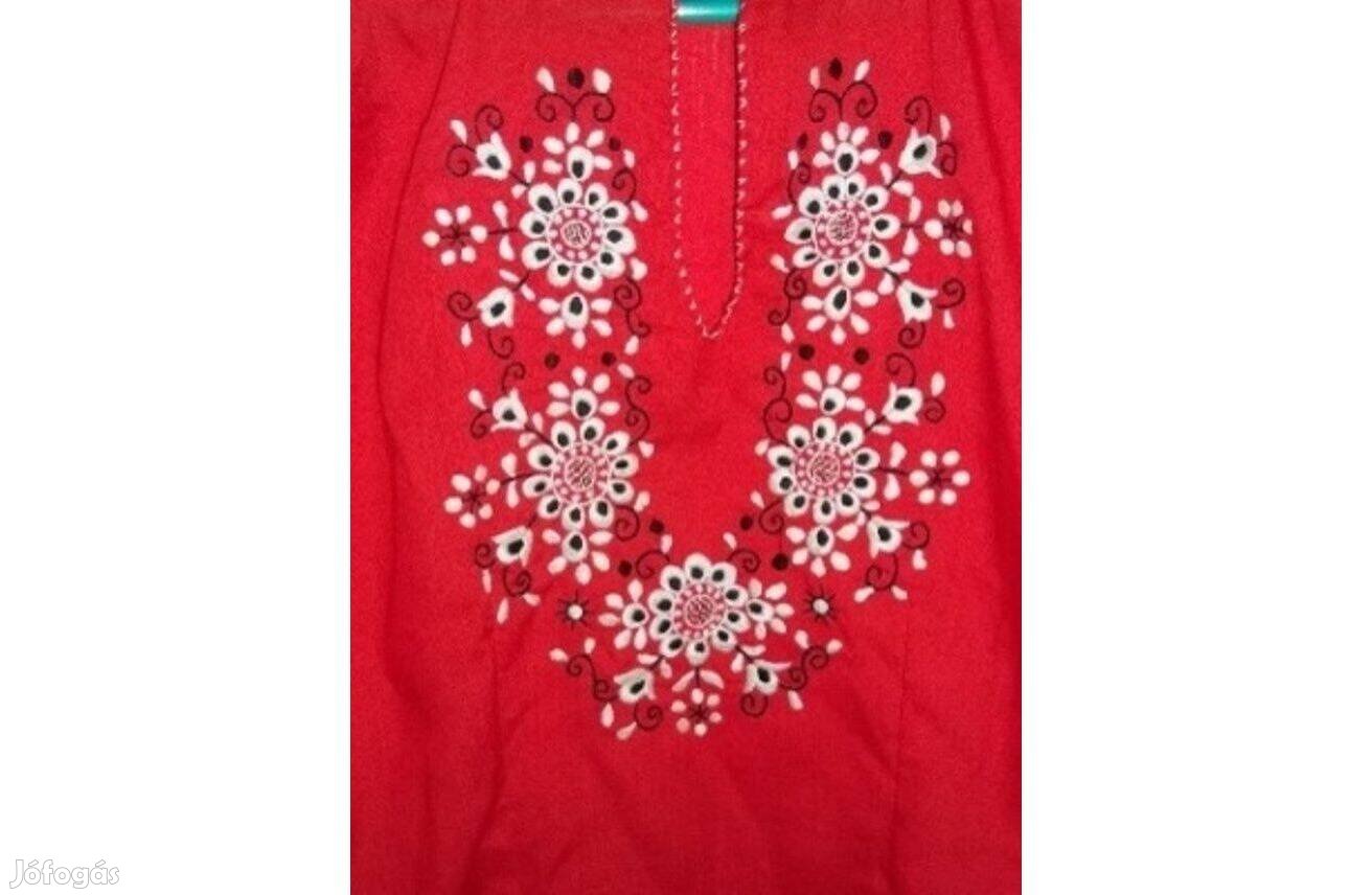 Női piros hosszú ujjú népművészeti hímzett blúz