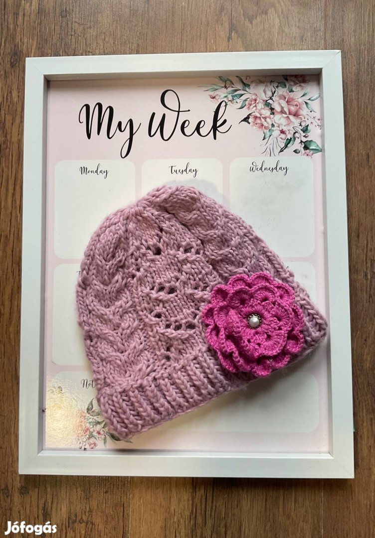 Női sapka, kézzel kötött-eper fagyi