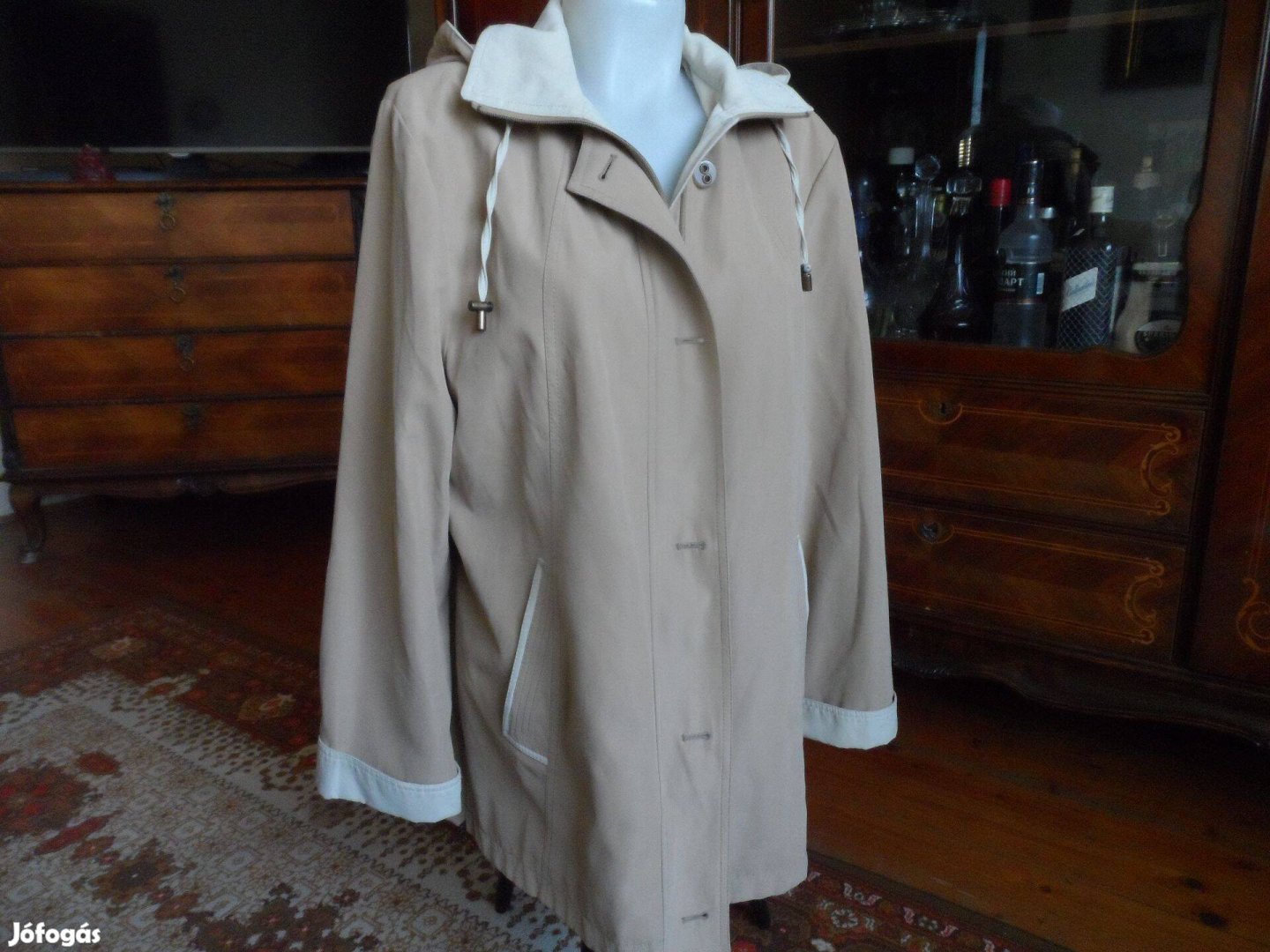 Méretprobléma miatt olcsón eladó egy szép állapotú, tejeskávé színű, cipzározható kapucnis elegáns átmeneti, tavaszi kabát L-XL méretre. Üléshez a két oldala cipzárral bővíthető. A méret pontosításához kiterítve lemért méretek: