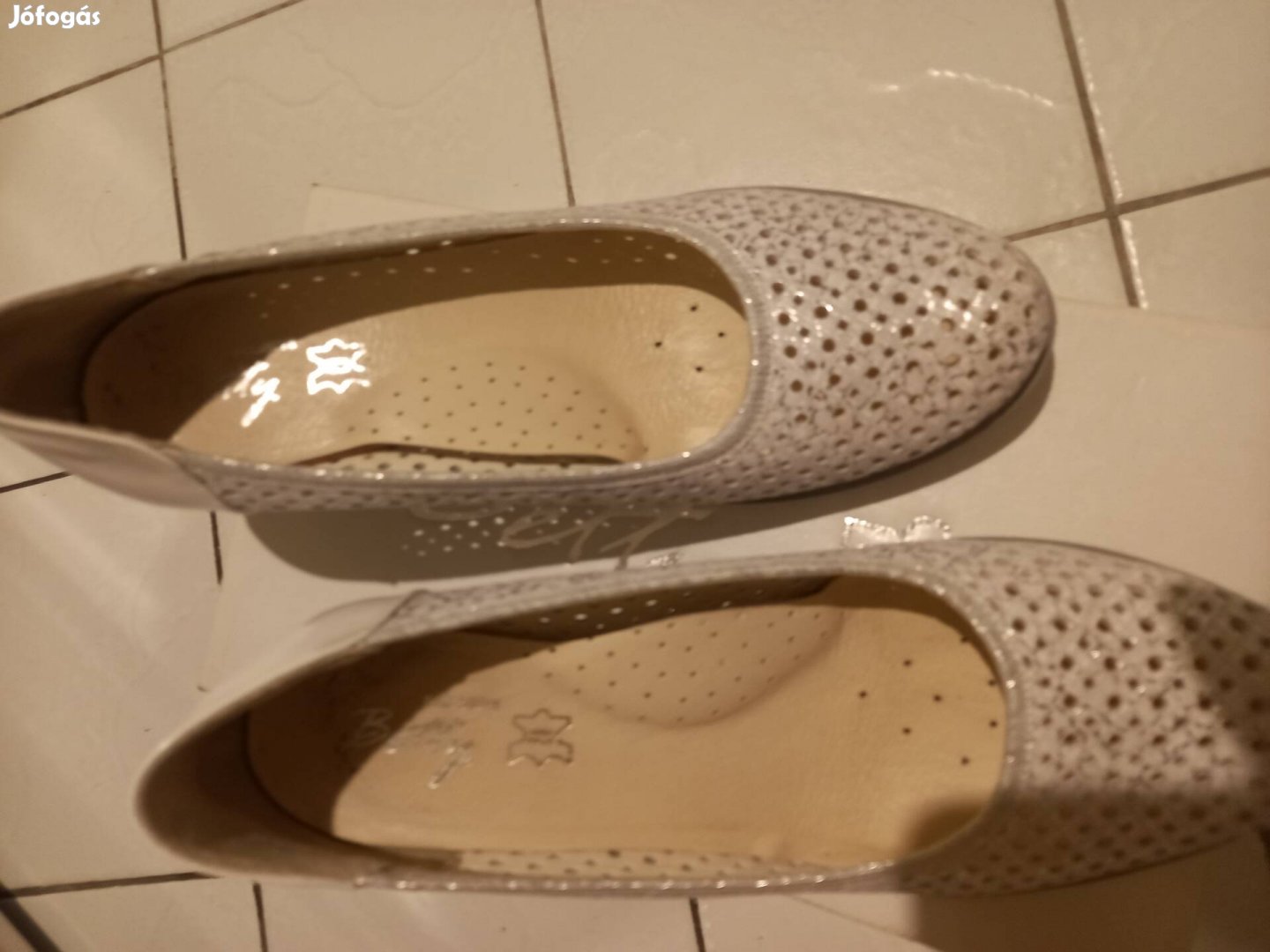Eladó női valódi bőr cipő fehér ezüst színű 38 méret