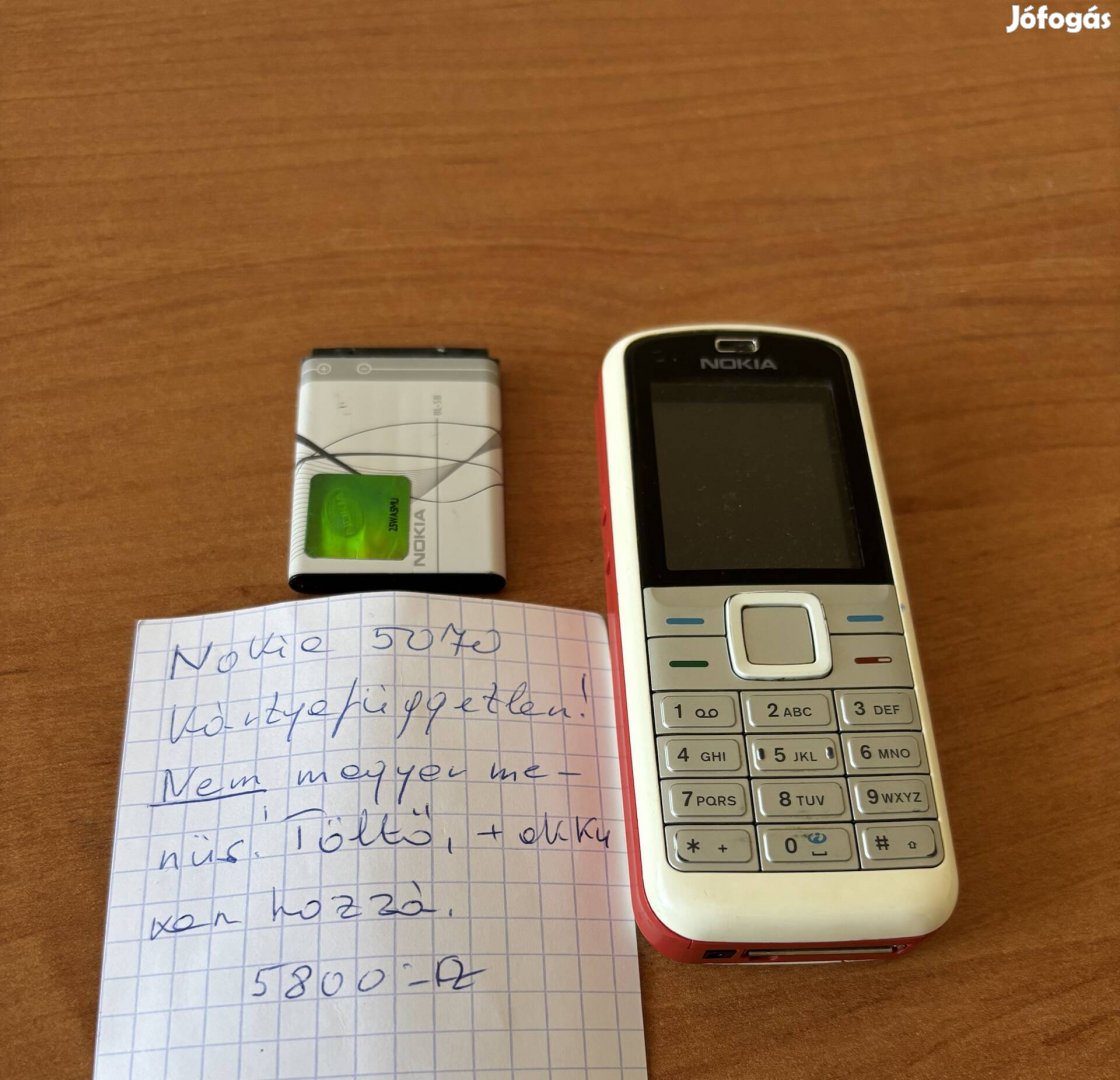 Nokia 5070 kártyafüggetlen, nem magyar menüs, Töltô és pót akku van hozzá, 5800.-Ft