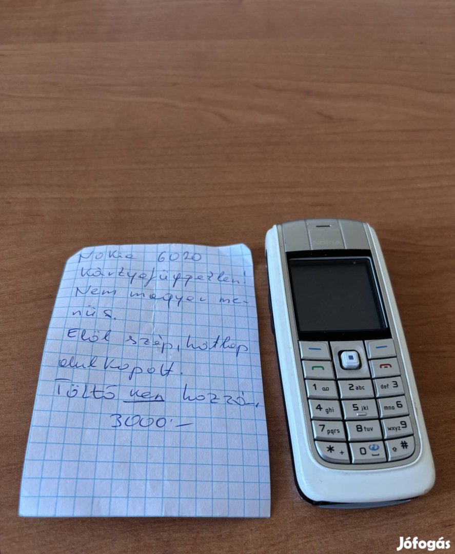 Nokia 6020 kártyafüggetlen, nem magyar menüs. Töltô van hozzâ. 3000.-Ft