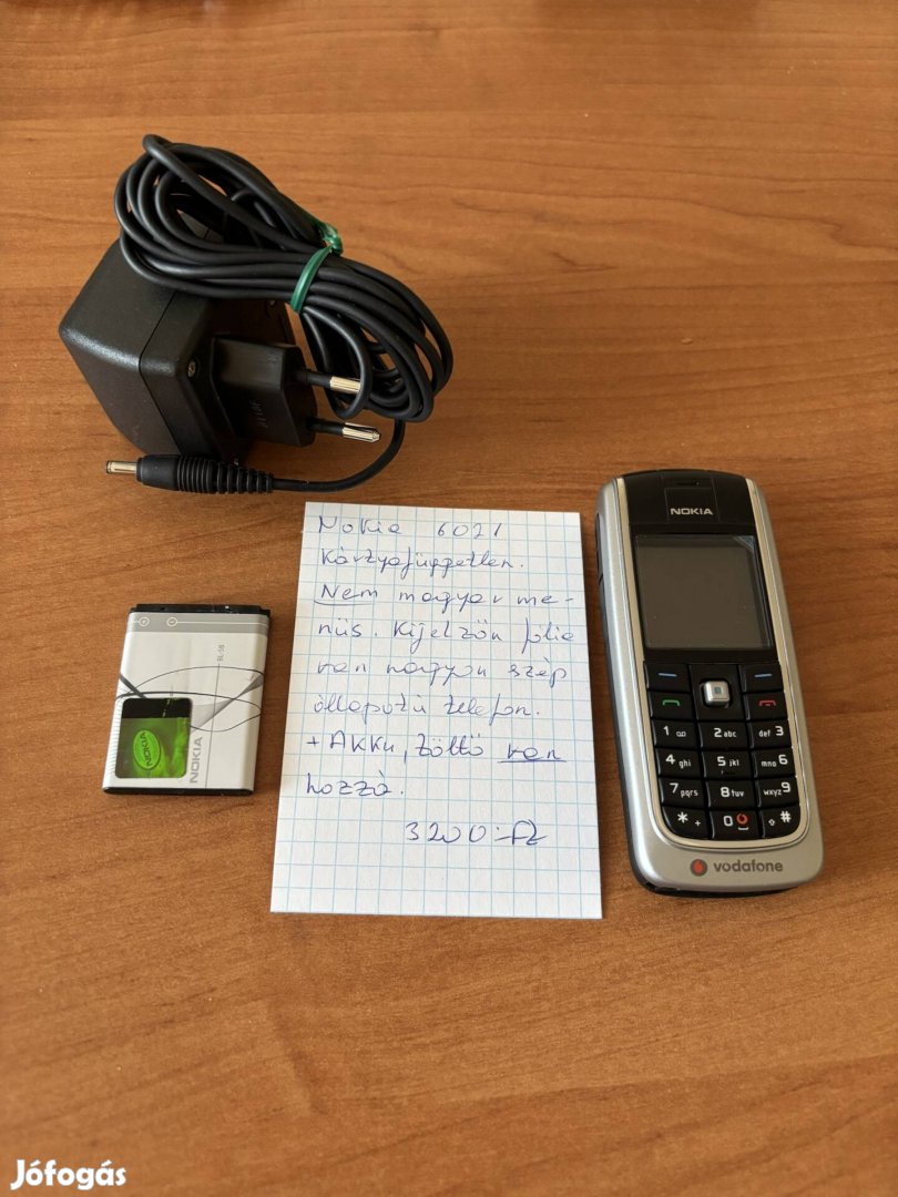 Nokia 6021 kártyafüggetlen, nem magyar menü. Töltô, pót akku van hozzá. 3200.-Ft