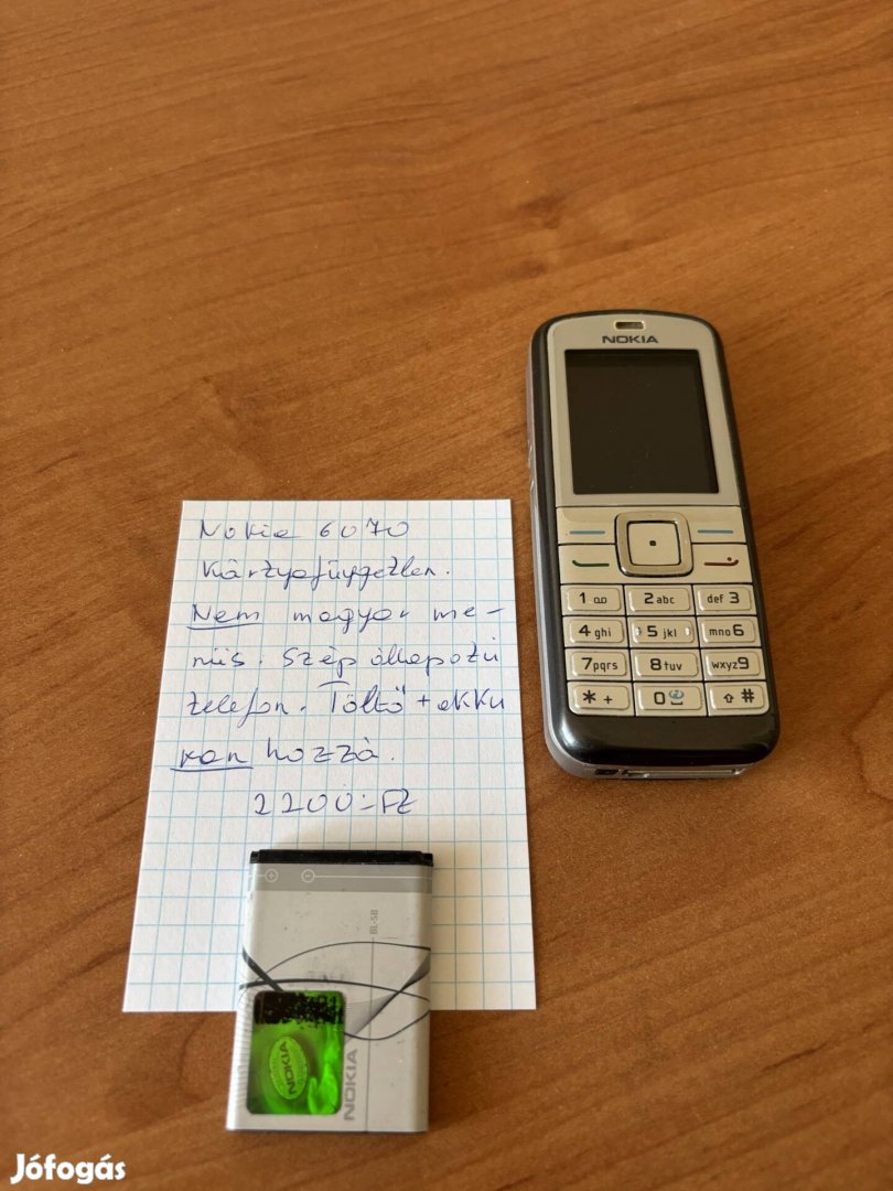 Nokia 6070 nem magyar menüs, kártyafüggetlen. 2200.-Ft töltô, +akku van hozzá, személyes átvétel / GLS küldés van.