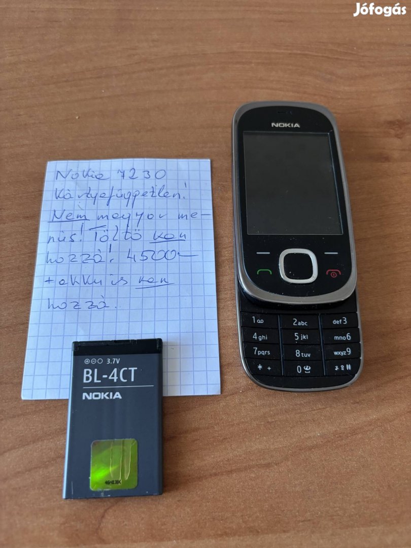 Nokia 7230 nem magyar menüs, kártyafüggetlen. 4500.-Ft töltô, +akku van hozzá, Személyes átvétel / GLS küldés van.