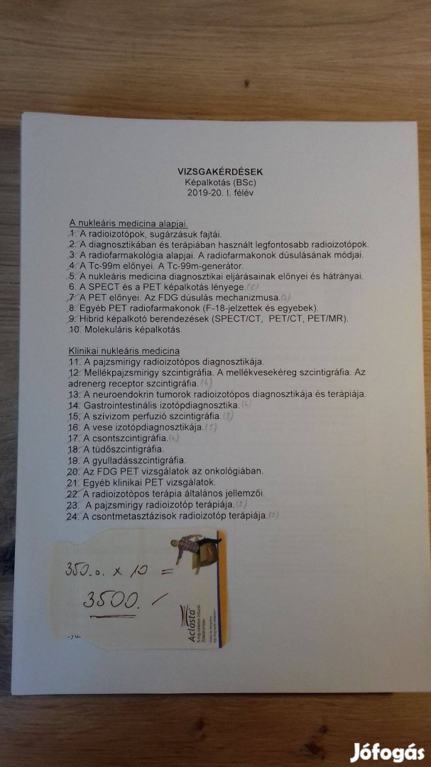Eladó a képeken látható egészségügyi főiskolai jegyzetek (Képalkotó diagnosztikai analitika/Radiográfia (Bsc)).