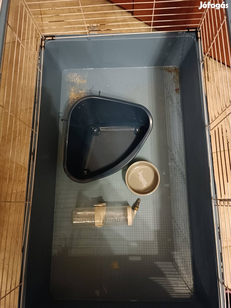Adok hozzá egy alomtálcát, egy etető tálat és egy itatót. Méretei: 95x57x56 cm.