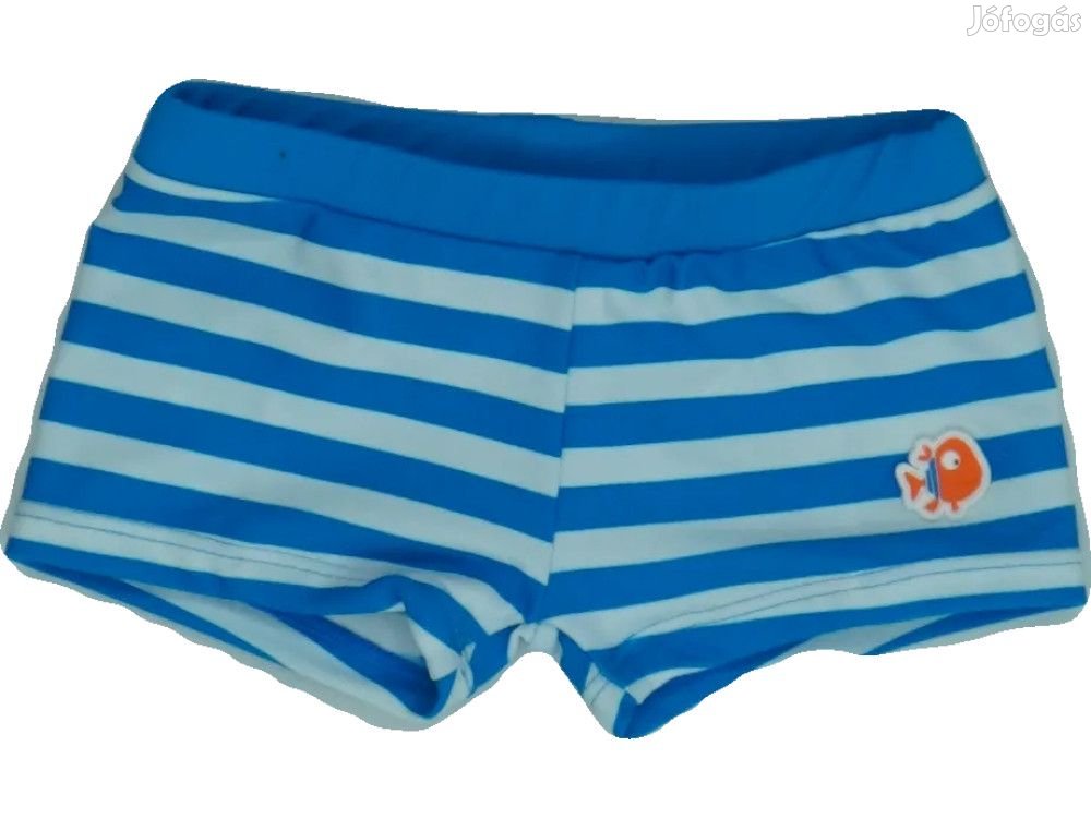 Fiú rövid szárú fürdősort; kék-fehér csíkos, elöl halacskás cimkével