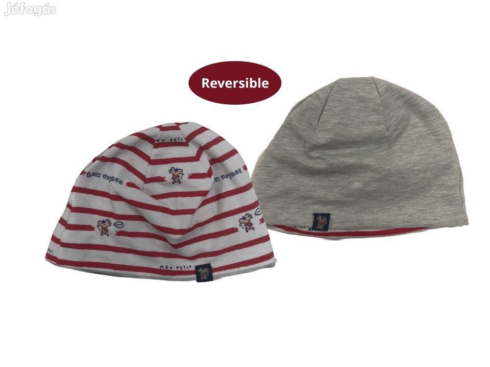 Megfordítható - Szürke/Piros csíkos, 'Bon voyage' felirattal