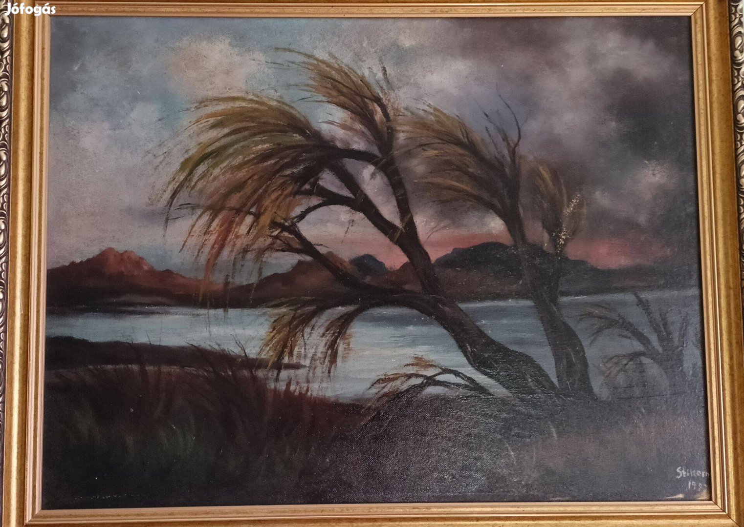 Gyönyörű, új állapotú Balatoni tájkép olajfestmény új rusztikus kerettel eladó.